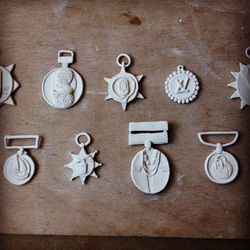 Somehow people always seem to want their lives to become better but what they mean by “better” seems never ending or never right. In this endless seeking, people gradually used visible and fast-pace material comforts to represent the value of a person. Artist Yu Wen Chien takes the images which society used to define value and transforms them into the figure of war medal. Nowadays people own objects just like collecting medals, and used them as a proof of self-value. However, no matter how many medals they get, or how much honor and glory, they are in spirit just like a war hero who has a mass of medals, but still cannot make up for the loss from the war.